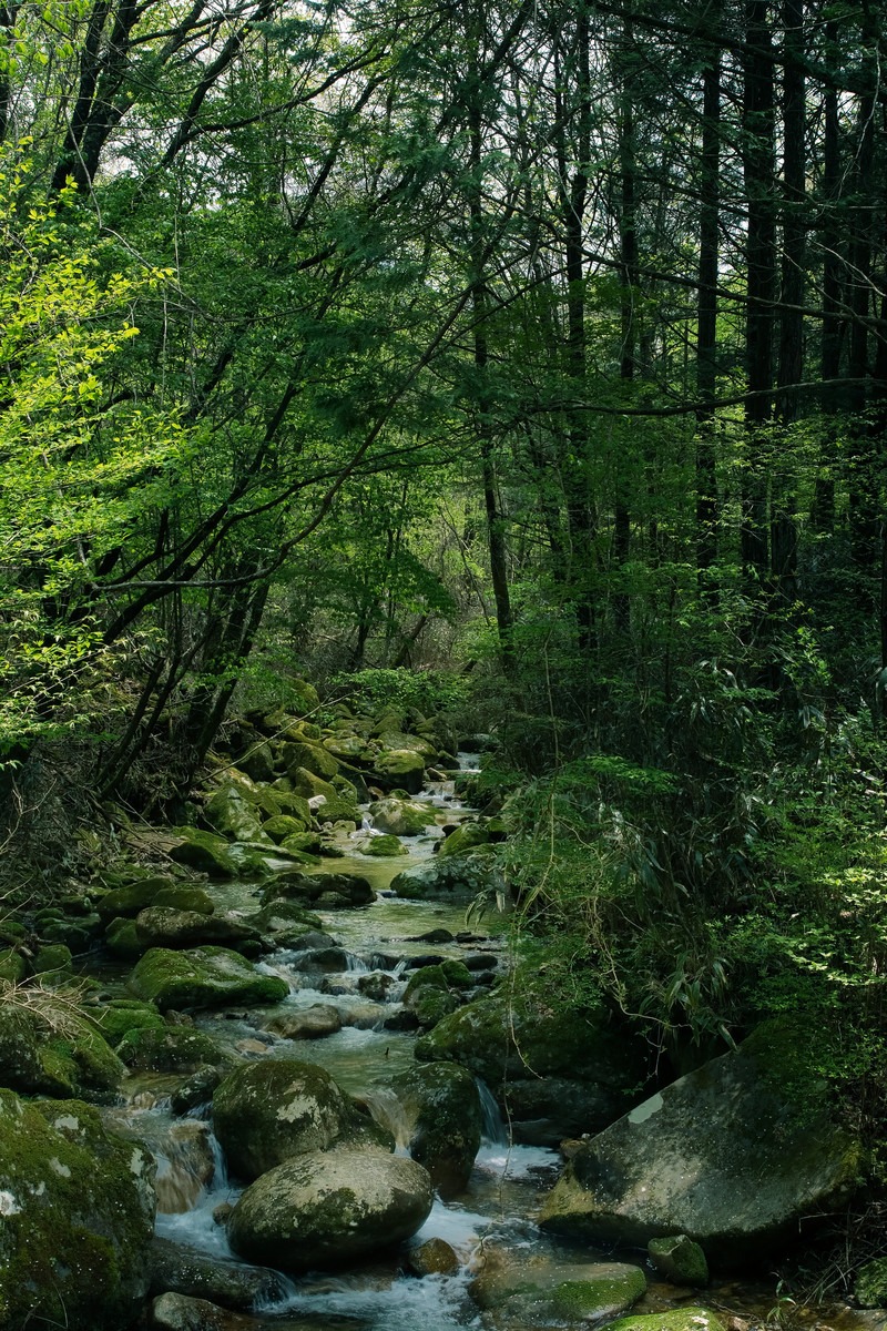 ライトを消すと真っ暗闇になる森の中。